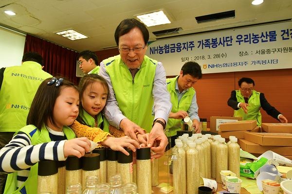 이날 봉사활동에 참여한 김용환 회장은 “임직원과 가족들의 따뜻한 정(情)을 담아 독거어르신 등을 위해 우리농산물 건강희망상자를 준비했다”며, “향후에도 농협금융은 우리 농산물 소비 촉진과 농가소득 증대에 기여할 수 있는 다양한 사회공헌 활동을 지속적으로 실시해 나가겠다”고 말했다.