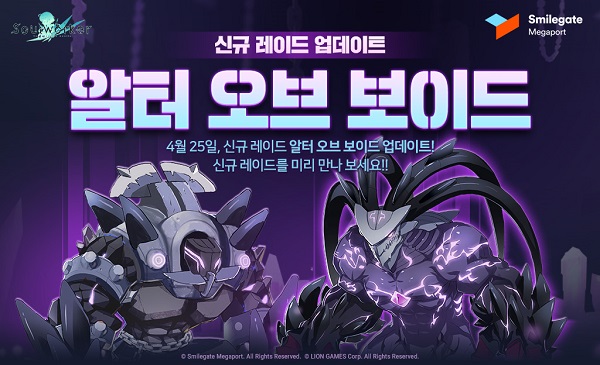 스마일게이트는 금일 공개된 ‘알터 오브 보이드’의 기본 정보 외에도 이번 레이드에서 획득 가능한 신규 장비와 플레이 영상을 오는 20일과 23일 순차적으로 공개할 예정이다. 정식 업데이트는 25일(수)에 진행된다.