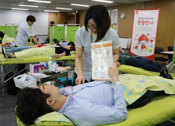 지난 26일 서울시 중구에 위치한 CJ제일제당 본사에서 진행된 임직원 헌혈 봉사활동에는 40여 명의 임직원이 참여했다. 헌혈 활동과 함께 헌혈증 기부도 동시에 진행, 헌혈에 참여한 사람은 물론 참여하지 않은 사람도 생명나눔 활동에 동참할 수 있도록 했다.