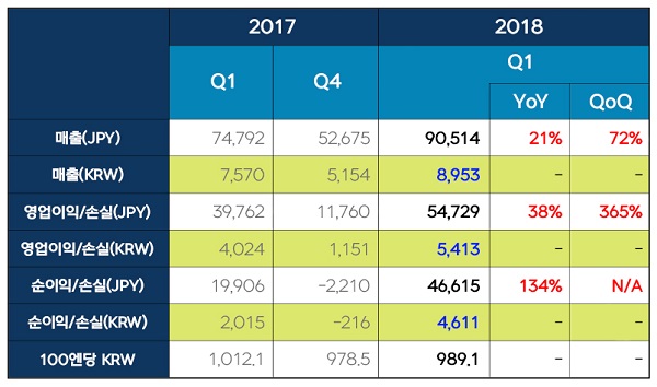 한편, 한국에서는 새로 출시한 타이틀들에 힘입어 전년 동기 모바일 게임 매출이 49% 증가했으며, 지난 해 인수한 픽셀베리 스튜디오의 대표작 ‘초이스(Choices: Stories You Play)’의 성과에 힘입어 북미지역 매출도 전년 동기 대비 2배 가까이 증가했다.