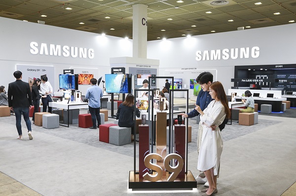 삼성전자는 '갤럭시 S9'과 '갤럭시 S9+', '2018년형 삼성 QLED TV', '삼성 노트북 오디세이 Z', '삼성 노트북 Pen' 등을 중심으로 관람객들이 직접 다양한 기능을 체험해 볼 수 있도록 전시장을 꾸몄다.