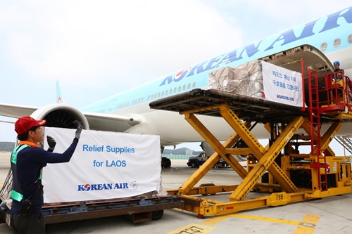 대한항공은 최근 라오스 댐 사고로 큰 피해를 입은 이재민들을 위해 긴급 구호물품 지원에 나섰다.