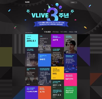 2015년 출시된 네이버 브이라이브는 누적 다운로드 5,700만을 기록하고 있으며, 3년간 총 2만5,177시간 라이브됐다.