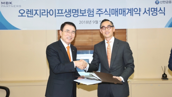 이후 오렌지라이프의 주가가 지속적으로 떨어지자 다급해진 MBK파트너스는 2조3000억 원에 신한금융과 매각을 합의한 것이다.