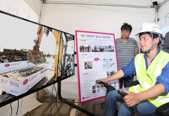 한편 LG유플러스는 지난 5월부터 2020년 5월까지 2년간 국방부 과제(민군기술적용연구사업)로 5G통신을 활용해 일반적인 굴삭기를 원격조작 굴삭기로 전환 시켜주는 시스템 연구를 수행한다. 이 연구는 DMZ 미확인 지뢰 매설 가능 지역에서의 지뢰탐색/제거, 수목제거, 재해복구 등과 같은 작업에 활용될 예정이며 LG유플러스, 로하우, 베이리스, 고등기술연구원 4개 업체가 참여한다.