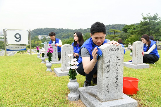 효성 임직원 20여 명은 19일 오후 서울 동작구에 위치한 국립서울현충원을 찾아 현충탑을 참배하고 태극기 교체, 헌화, 묘비 닦기 등 정화활동을 진행했다. 효성이 찾은 현충원 9묘역은 전사 또는 순직한 군인 및 경찰관 총 627위가 안장돼 있는 곳이다.