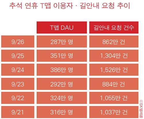 9월 24일 386만 명이 ‘T맵x누구’를 이용해 역대 최고치를 기록했다.