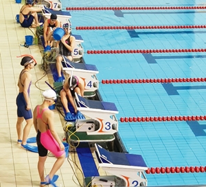 공식 수영장은 길이 50m, 너비 최소 21m, 수심 1.8m 이상이어야 하며 레인 수는 8개, 레인 너비는 2.5m, 1번과 8번 레인 양 바깥쪽에는 벽과 50㎝ 이상의 공간이 있어야 한다.