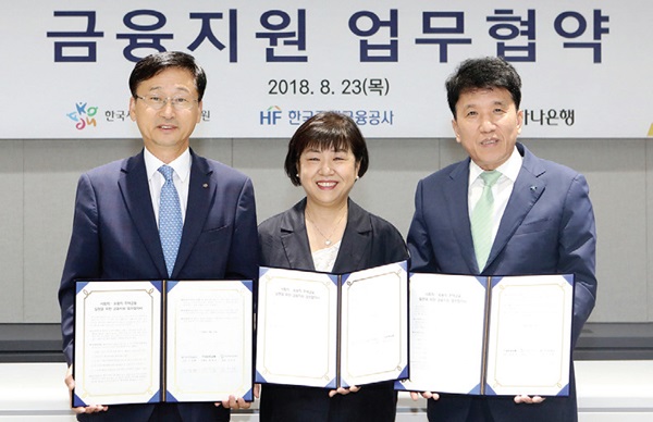 이날 업무협약식에는 함영주 KEB하나은행장과 이정환 한국주택금융공사 사장 및 김인선 한국사회적기업진흥원장이 참석해 사회적기업 종사자와 사회복지산업 종사자의 주거안정을 포함한 다양한 업무를 3사가 함께 진행키로 했다.