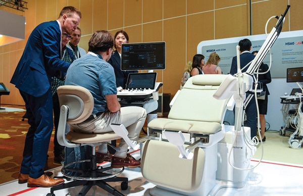 이외에도 삼성은 실시간 화면 공유, 음성 채팅 등의 기능으로 장비 사용상의 공간적 제약을 극복한 초음파 이미지 공유 솔루션 ‘소노싱크(SonoSync™)’를 시연해 병원 운영 효율성을 극대화한 기술이라는 호평을 받았다.