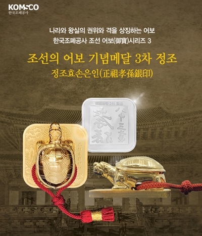 ‘조선의 어보 기념메달 시리즈’는 2017년 유네스코에 등재된 조선 왕실의 유물인 어보의 가치를 알리고 해외로 유실된 어보를 되찾기 위한 기금 조성을 위한 사업으로, 지난해 선보인 1차‘태조가상시호금보’(太祖加上諡號金寶)와 2차‘세종시호금보’(世宗諡號金寶)는 전량 매진된 바 있다.