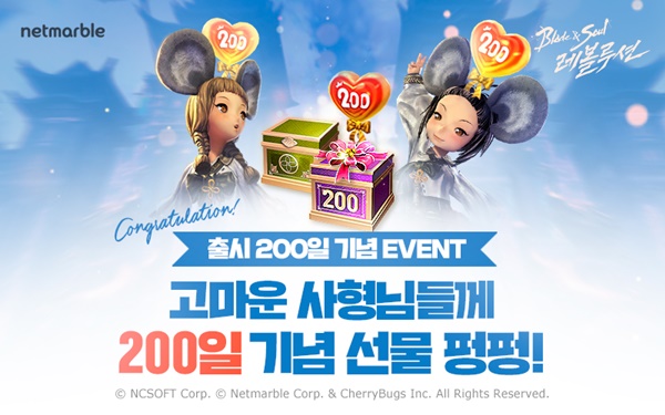 [뉴스비전e] 넷마블(대표 권영식)은 모바일 MMORPG(다중접속역할수행게임) '블레이드 & 소울 레볼루션(개발사 체리벅스)'의 서비스 200일을 맞아 이용자를 위한 감사 이벤트를 진행한다.