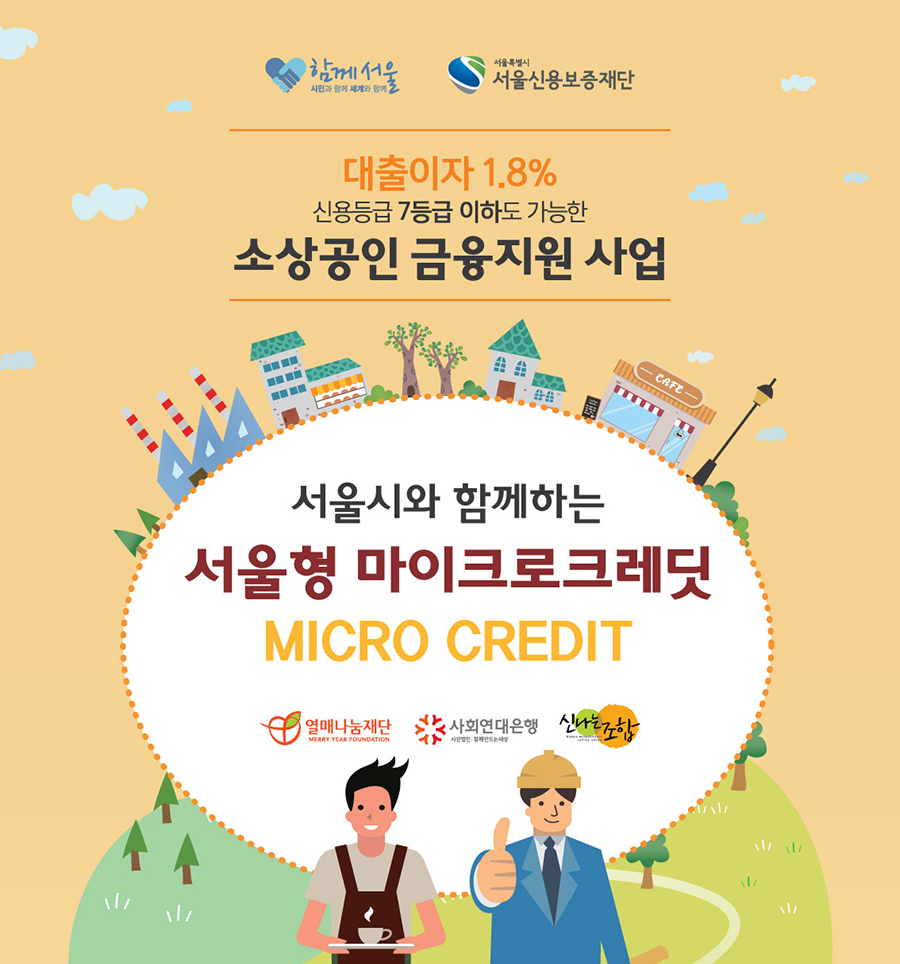 한편 2012년 6월부터 ‘서울형 마이크로크레딧’을 운영 중인 열매나눔재단은 2018년 12월까지 384개 업체에 특별보증 추천을 지원하였으며 누적 지원금은 73억3,100만 원에 달한다. 올해에도 12억 원의 자금을 투입하여 운영한다.