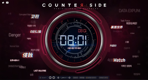 넥슨은 티저사이트(https://counterside.nexon.com)를 통해 ‘침식’, ‘이면세계’, ‘워치’, ‘카운터’ 등 세계관을 드러내는 6개의 키워드와 중요한 게임 정보를 암시하는 ‘시간(08:01)’을 담은 티저 영상을 선보이며 이용자들의 호기심을 자극했다.