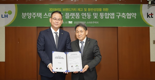 [뉴스비전e] KT는 한국토지주택공사와 2019년도 분양주택 스마트홈 플랫폼 연동 및 통합앱 구축을 위한 사업 협약을 체결했다.