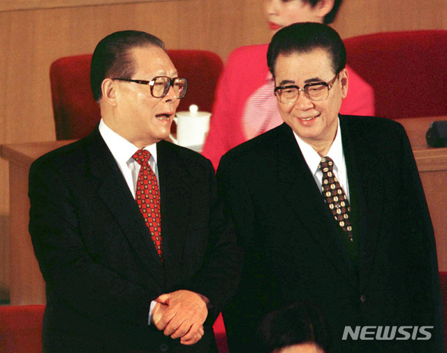 1998년 3월 14일 리펑(오른쪽) 당시 중국 총리가 베이징에서 열린 중국인민정치협상회의 폐막식 도중 장쩌민 중국 주석과 얘기하는 모습. [사진=뉴시스]