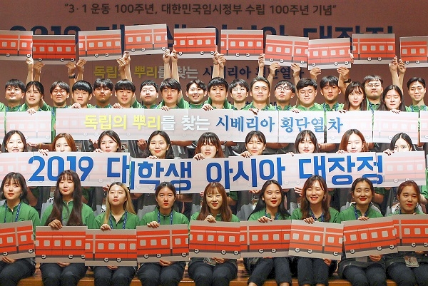 전국 각지에서 선발된 60명의 대학생들은 출발에 앞서 대형 포토월에 시베리아 횡단열차 모양의 퍼즐을 완성하고, 카드섹션과 함께 힘차게 구호를 외치며 청년정신을 가슴에 품겠다는 의지를 다졌다.