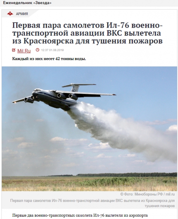 불가코프 차관은 IL-76 군용기들이 2대씩 조를 이루어 하루 최소 20회 이상 산불 현장으로 출동할 것이라고 설명했다. 러시아 당국은 또 산불 진화를 위해 요오드화은을 구름 속에 살포해 인공 강우를 발생시키는 방안도 계획중이다.