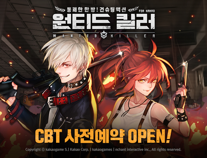 [뉴스비전e 정윤수 기자] 카카오(대표 임지훈)는 카카오의 모바일 게임 퍼블리싱 브랜드 ‘카카오게임 S’ 건슈팅 액션게임 ‘원티드 킬러 for Kakao(이하 ‘원티드 킬러’)’의 2차 비공개 테스트 (CBT:Closed Beta Test) 일정을 공개하고 사전 예약을 시작했다고 27일 밝혔다.