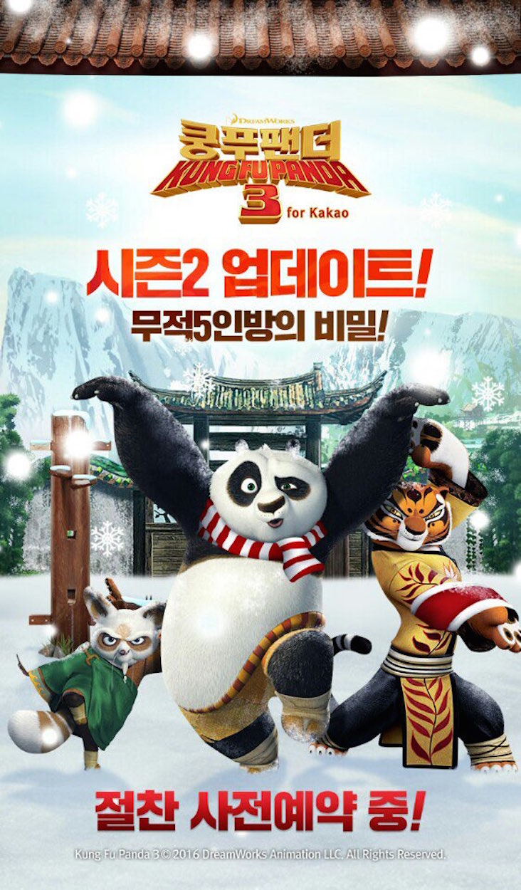 한편 카카오는 ‘쿵푸팬더3 for Kakao 시즌 2’ 업데이트 사전예약에 참여하는 이용자들을 대상으로 화끈한 게임 아이템 증정 이벤트를 실시한다고 전했다.
