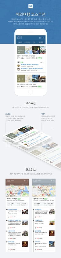 특히, 이번 해외여행 코스추천은 최근 2년 동안 네이버를 통해 누적된 1,220만여 건의 양질의 여행 관련 데이터를 분석해 ▲코스의 테마, 경유지, 총거리, 이동시간 등을 담은 ‘코스정보’ ▲해당 코스에 대한 생생한 이용자 리뷰를 확인할 수 있는 ‘여행기’를 제공한다.