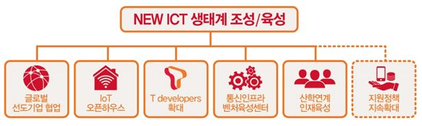 SK텔레콤은 New ICT 생태계를 ‘인공지능과 빅데이터, IoT등 다양한 기술과 서비스가 융합되어 새로운 가치를 창출해 내는 전면적 개방 시스템’으로 규정짓고, 투자와 지원을 통해 국내 ICT 생태계의 판을 키워 국가경제가 함께 발전하는 선순환 구조를 만들어 나갈 계획이다.