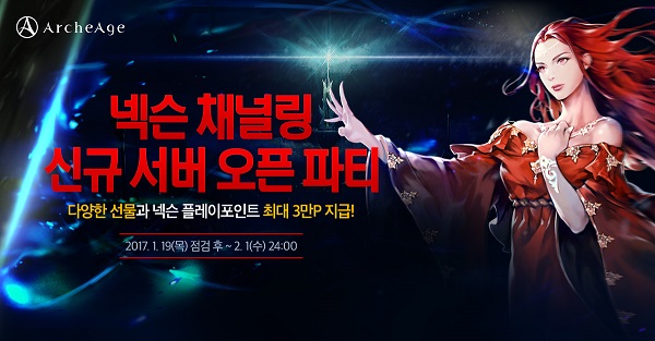넥슨은 ‘아키에이지’ 채널링 서비스를 기념해 2월 2일까지 신규 서버에서 캐릭터를 생성하는 모든 유저에게 게임 내 상점을 통해 ‘날렵한 신기루 곰(1일)’, ‘노동력(500)’ 2개, ‘소형달구지 소환주문서(영구)’ 등 아이템을 무료로 지급한다.