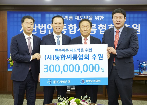 [뉴스비전e 이미정 기자] IBK기업은행(은행장 김도진)은 전통 스포츠인 ‘씨름’의 활성화를 위해 사단법인 통합씨름협회에 후원금 3억원을 전달했다고 19일 밝혔다.