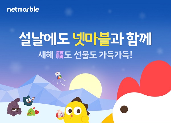 [뉴스비전e 장연우 기자] 넷마블게임즈(이하 넷마블, 대표 권영식)는 설 명절을 맞아 자사를 대표하는 인기 모바일 게임에서 풍성한 혜택을 제공하는 특별 이벤트를 진행한다고 24일 밝혔다.