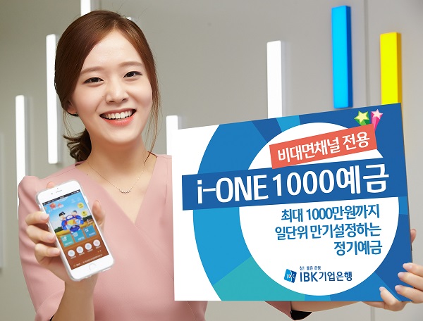 [뉴스비전e 이미정 기자] IBK기업은행은 인터넷뱅킹과 모바일뱅킹인 i-ONE뱅크에서 가입할 수 있는 비대면전용 거치식 상품인 ‘i-ONE 1,000예금’을 개인고객에게 판매한다고 1일 밝혔다.