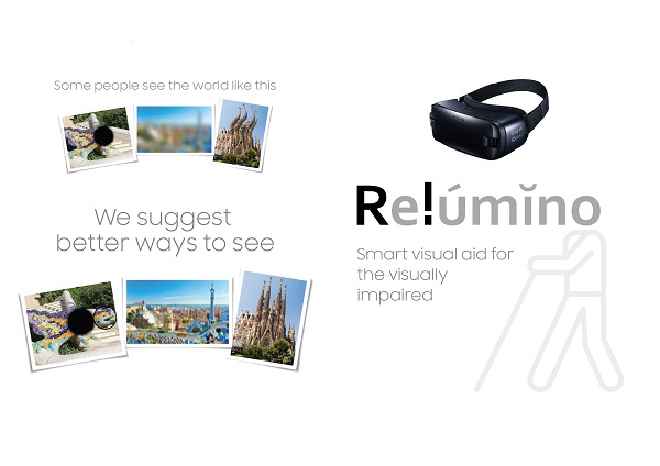'릴루미노'는 시각장애인을 위해 기어VR을 활용한 시각보조 솔루션으로, 기어VR을 통해 보는 영상을 이미지 프로세싱해 시각장애인들이 인식하기 쉬운 형태로 제공한다.