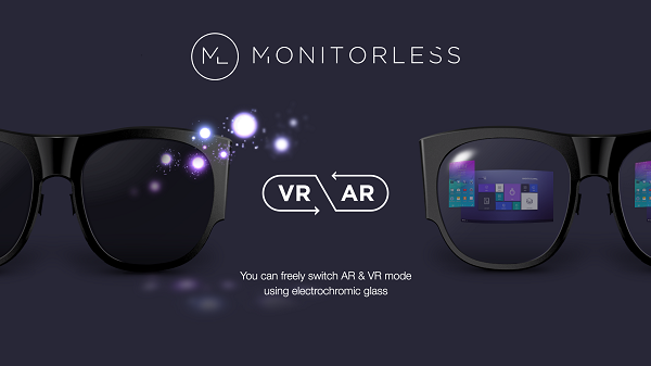 특히 '모니터리스'의 선글래스 디바이스는 전기변색 유리*를 채택해 사용환경에 따라 VR과 AR 모드의 선택도 가능하다.