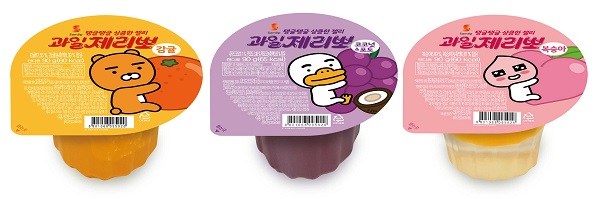 투명하고 탱글한 젤리와 함께 감귤, 코코넛과 포도, 복숭아 세 종류의 상큼한 과육을 더했으며, 기존 제품보다 용량을 30g 늘렸다. 카카오프렌즈의 캐릭터 라이언, 튜브, 어피치를 패키지 디자인에 적용했다.