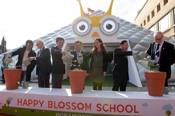이날 ‘티움 모바일’ 개관식에는 미래부 최재유2차관, GSMA Ltd. 존 호프만 CEO, 텔레포니카 제이미 앙굴로 Talentum School 담당자, SK텔레콤 박정호 사장 등 국내·외 VIP들과 더불어 한국에서 초청된 ‘새싹 원정단’ 봉동초등학교 학생들 및 현지 어린이들이 함께 참석했다.