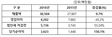 2016년 매출은 ‘열혈강호’ IP(지식재산권)를 활용한 웹게임 ‘열혈강호전’의 중화권 매출과 ‘나이트 온라인’의 글로벌 서비스(스팀) 및 모바일게임 ‘크레이지드래곤’의 신규 매출이 더해져 전년동기대비 9.7% 상승했다.