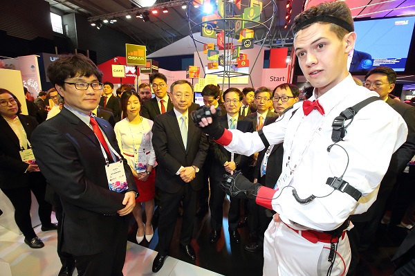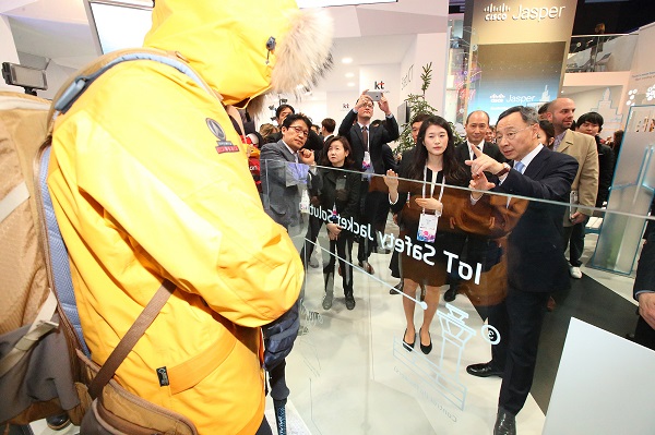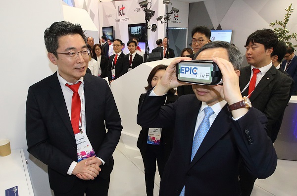 [뉴스비전e 이진구 기자] KT 황창규 회장이 27일(이하 현지시간) 스페인 바르셀로나에서 개막한 모바일 월드 콩그레스(MWC) 2017 기조연설 후 KT 전시관을 방문했다. 황창규 회장은 전시관 곳곳을 둘러보며 최신 ICT 기술을 몸소 체험했다.