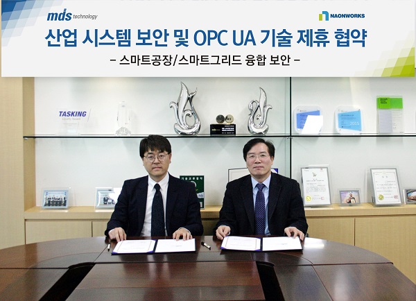 [뉴스비전e]임베디드 솔루션 전문기업 MDS테크놀로지(대표 장명섭)는 산업제어 시스템 보안 전문기업 나온웍스(대표 이준경)와 “스마트 팩토리 보안사업 및 OPC UA(Open Platform Communication Unified Architecture) 기술협력”을 위한 상호양해각서(MOU)를 체결했다고 15일 밝혔다.
