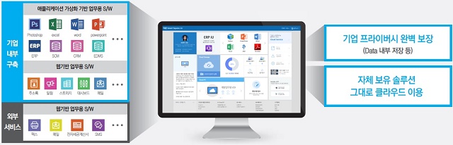 더존비즈온이 제공하는 클라우드 업무 포털에 직원별 계정을 통해 접속하기만 하면 업무에 필요한 소프트웨어와 저장공간(스토리지)을 언제 어디서나 기기의 제한 없이 사용할 수 있게 된다. 기존처럼 업무 자료를 파일로 복사할 필요 없이 공유 폴더 기능으로 다른 직원과 손쉽게 공유할 수도 있다.