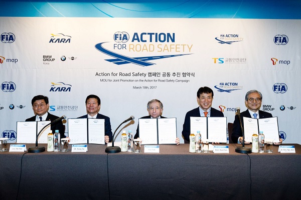 18일 서울 호텔신라에서 진행된 교통안전 개선 공동 추진 업무 협약식에는 자동차 관련 세계최고 기구인 국제자동차연맹 장 토드(Jean Todt) 회장을 비롯하여 SK텔레콤, 대한자동차경주협회, 교통안전공단, BMW 그룹 코리아 등 자동차 운전문화 핵심 대표 기관들이 대거 참여했다.