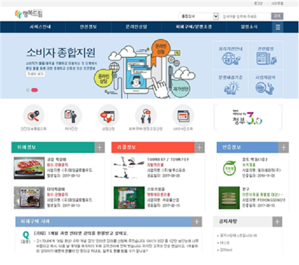 아울러, 소비자가 상품 구매로 피해를 입은 경우, 행복드림을 통해 상담 · 피해 구제(분쟁 조정 포함)를 신청하고 결과 확인까지 가능하다.