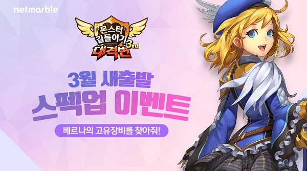 [뉴스비전e 장연우 기자] 넷마블게임즈는 모바일 액션 RPG ‘몬스터 길들이기 for Kakao’에서 새로운 시작을 알리는 봄을 맞아 ‘새 출발 스펙업 이벤트’를 진행한다고 21일 밝혔다.