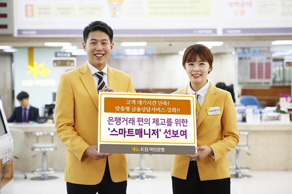 KB국민은행 관계자는 “스마트매니저 운영을 통해 혼잡한 창구를 개선하고, 전문적인 맞춤형 금융상담 서비스를 제공할 것”이라며,“앞으로 스마트매니저 운영지점을 확대해 고객의 은행거래 편의성을 지속적으로 높여 나갈 것”이라고 말했다.