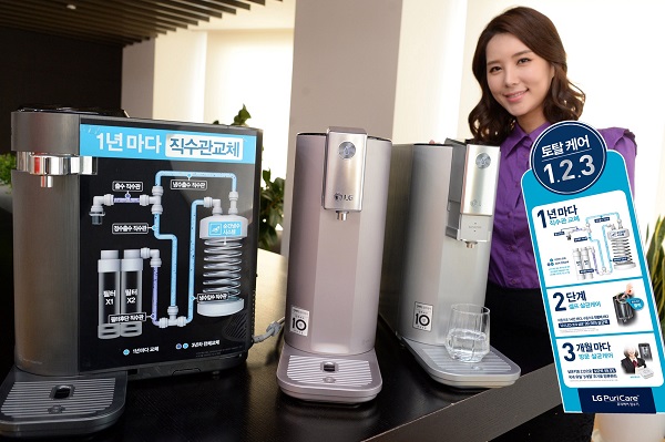 LG전자는 매년 ‘퓨리케어’ 정수기 사용 고객을 대상으로 냉수가 들어가고 나오는 직수관과 정수가 나오는 직수관을 교체해준다. 또 정수기 안으로 물이 들어가는 직수관 및 자체 살균이 가능한 온수 직수관을 제외한 정수기 내부의 모든 직수관을 서비스 가입후 3년이 지나면 교체해준다.