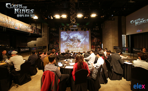 [뉴스비전e 장연우 기자] 일렉스 테크놀로지(Elex Technology)는 자사가 구글 플레이스토어와 애플 앱스토어, 원스토어를 통해 서비스 하고 있는 모바일 전략 시뮬레이션 게임 ‘클래시 오브 킹즈(Clash of Kings)’가 한·중 대항전을 성황리에 마쳤다고 27일 밝혔다.