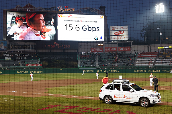 지난 31일 시구 · 시타자(오승주 씨, 오찬영 · 다니엘 · 요셉 군)는 5G커넥티드카를 타고 마운드에 등장했다. 시구자의 생생한 표정이 대형전광판에 5G로 생중계돼 관람객들의 이목을 끌었다.