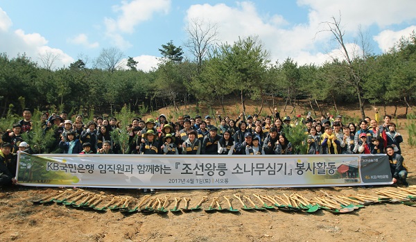 이날 봉사활동은 KB국민은행 임직원 비롯한 임직원 가족 100여명이 참여했으며, 조선왕릉에 소나무를 심고 주변 환경을 정비하는 문화재 보호활동과 식목행사를 가졌다.