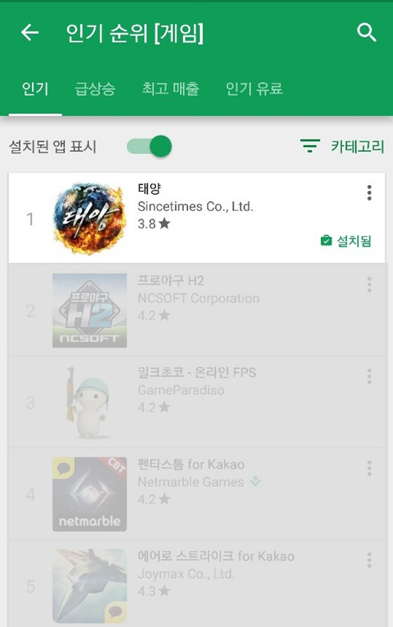 [뉴스비전e 장연우 기자] 신스타임즈(SINCETIMES, 舊코원시스템, 대표 왕빈)는 자사에서 개발하고, 서비스하는 모바일 해상 MMORPG ‘태양’이 구글플레이 무료 인기 게임 1위에 등극했다고 10일 밝혔다.