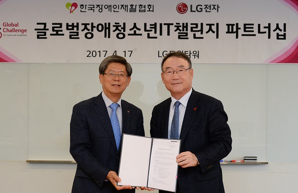 [뉴스비전e 이미정 기자] LG전자와 한국장애인재활협회는 17일 서울 여의도 LG트윈타워에서 ‘글로벌장애청소년IT챌린지’ 후원을 위한 MOU를 맺었다고 18일 밝혔다.