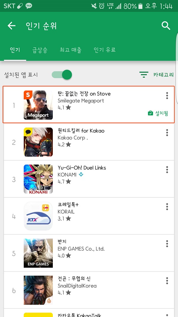 [뉴스비전e 장연우 기자] 스마일게이트는 지난 18일부터 정식 서비스를 시작한 모바일 FPS 대작 ‘탄: 끝없는 전장(이하 탄)’이 구글 플레이스토어에서 게임뿐 아니라 전체 앱을 대상으로 한 순위에서 1위에 등극했다고 26일 밝혔다.