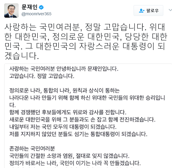 [뉴스비전e 김평기 기자] "위대한 국민들의 위대한 승리". "새로운 나라 꼭 만들겠다"